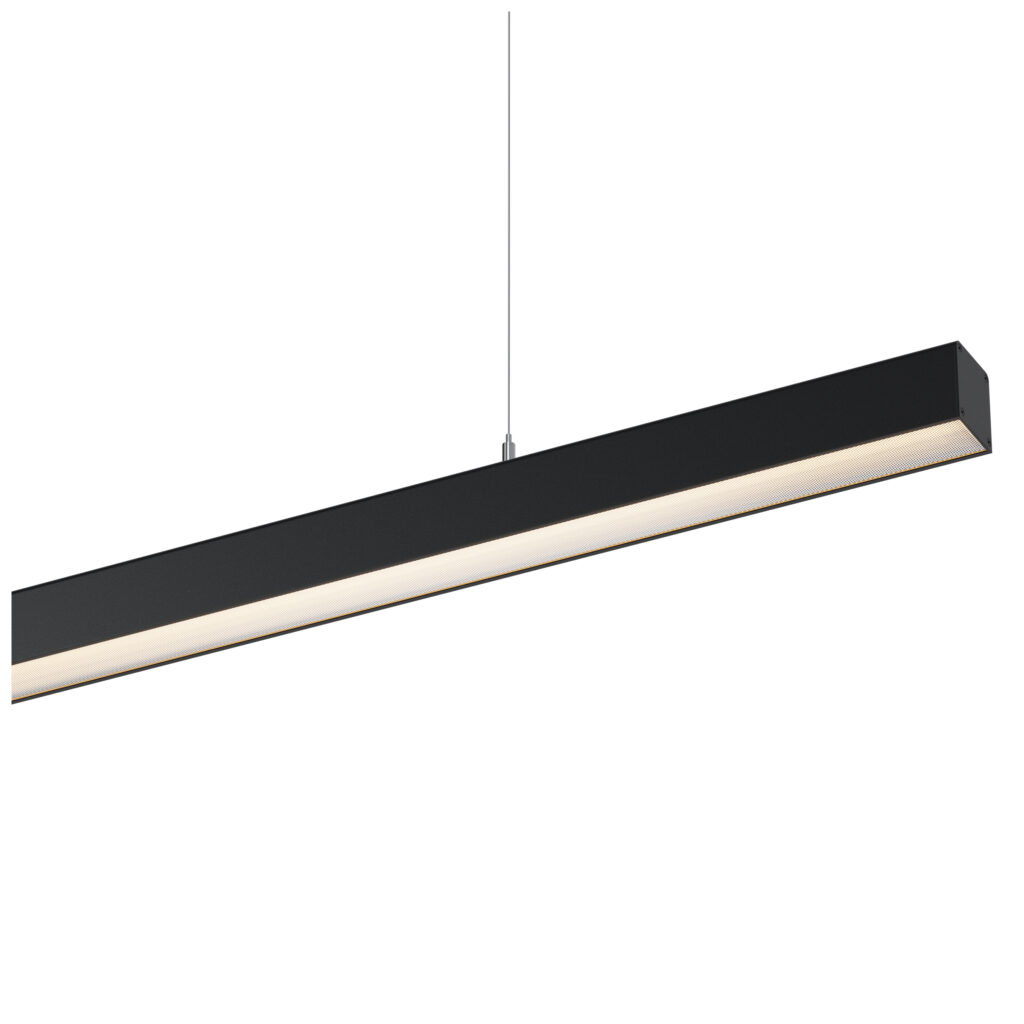 Komo is a linear light that seamlessly integrates into any interior design. The soft, diffuse light from its opal or microprismatic diffuser ensures comfortable illumination without glare. This luminaire is ideal for use in schools, sports clubs, offices, and stores. Additionally, Komo can be assembled into a continuous line, extending up to 50 meters.